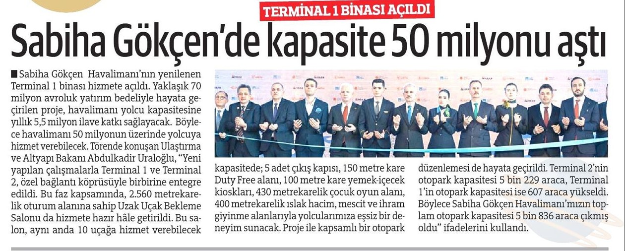 yükseldi. Böylece Sabiha Gökçen Havalimanı’mızın toplam otopark kapasitesi 5 bin 836 araca çıkmış oldu"