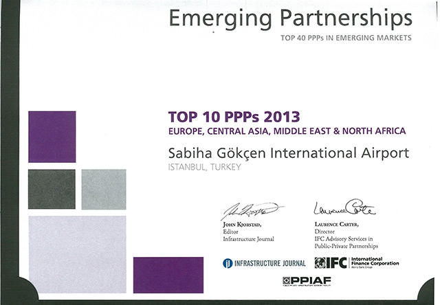 İstanbul Sabiha Gökçen Uluslararası Havalimanı’nı işleten Limak GMR Group ve Malaysian Airports (MAHB) ortaklığı, Dünya Bankası’na bağlı Uluslararası Finans Kurumu (IFC) ve Infrastructure Journal tarafından; Avrupa, Orta Asya, Ortadoğu ve Kuzey Afrika Bölgesi’ndeki ’En İyi İlk 10 Kamu Özel işbirliği Projesi’, tüm gelişmekte olan pazarlarda ise ’En İyi 40 Kamu Özel işbirliği Projesi’nden biri olarak seçildi.
